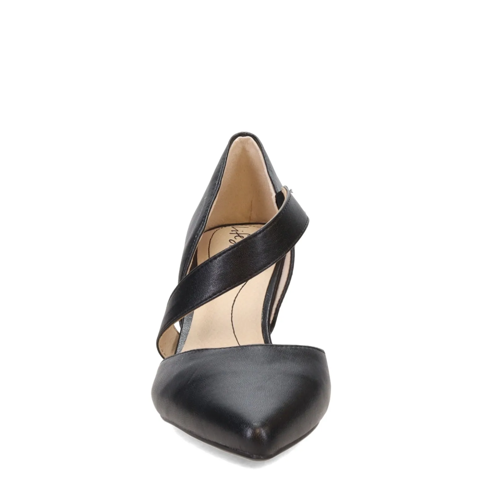 Women’s Lifestride, Suki pumps. A foot flattering mid heel pump style. Synthetic uppers in a pointed toe designAsymmetri…