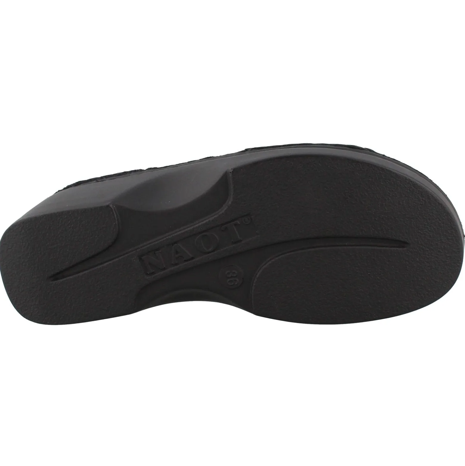 - Naot’s removable anatomic cork and latex footbed is wrapped with suede and molds to the shape of your foot