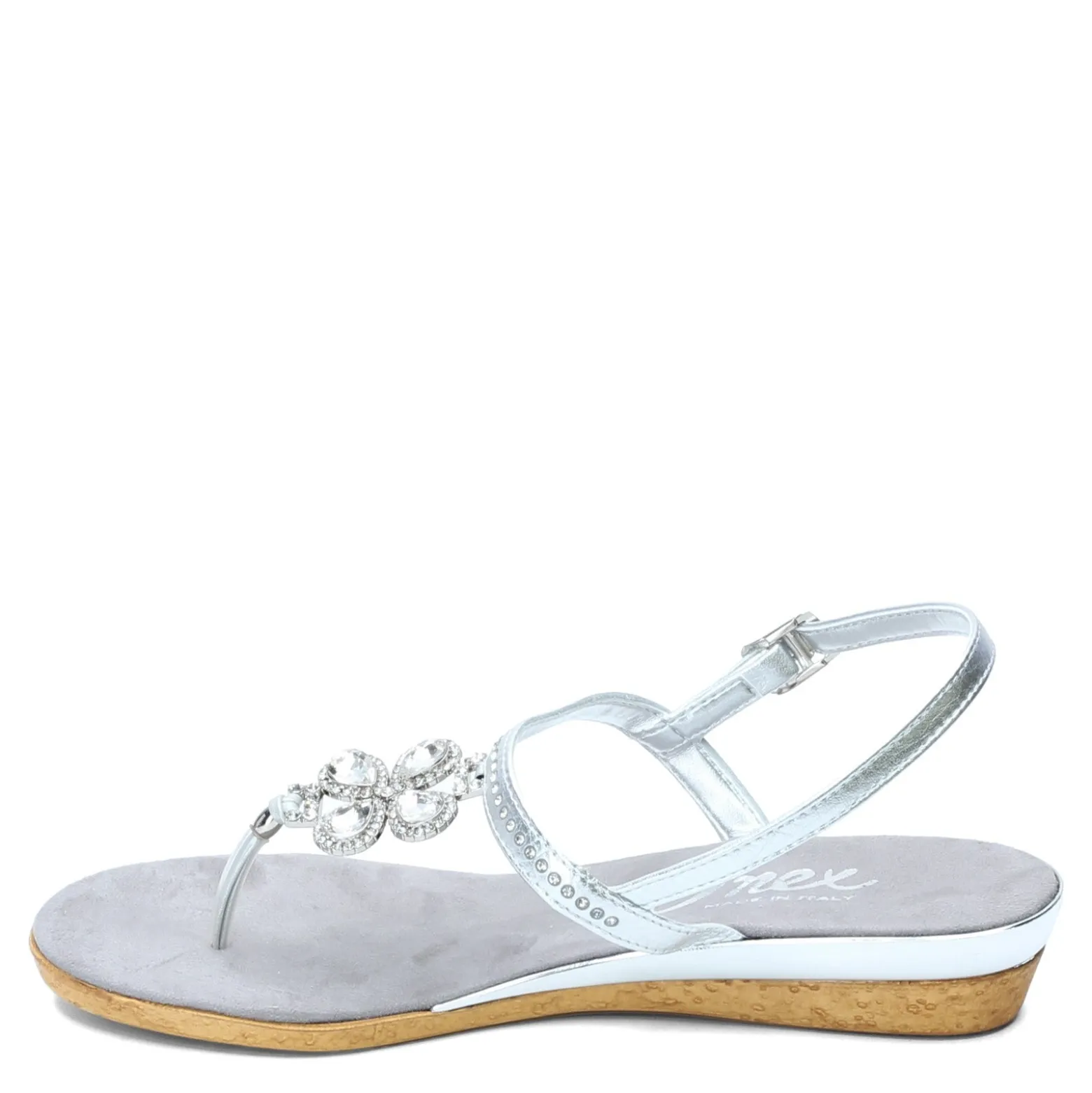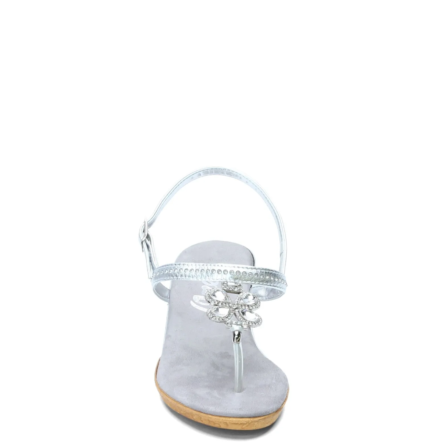 Women’s Onex, Taylor Sandal. These glamourous sandals will create a showstopping look. So much sparkle – rhinestones set in the instep strap and a jeweled floral shaped ornament on the thong strap.