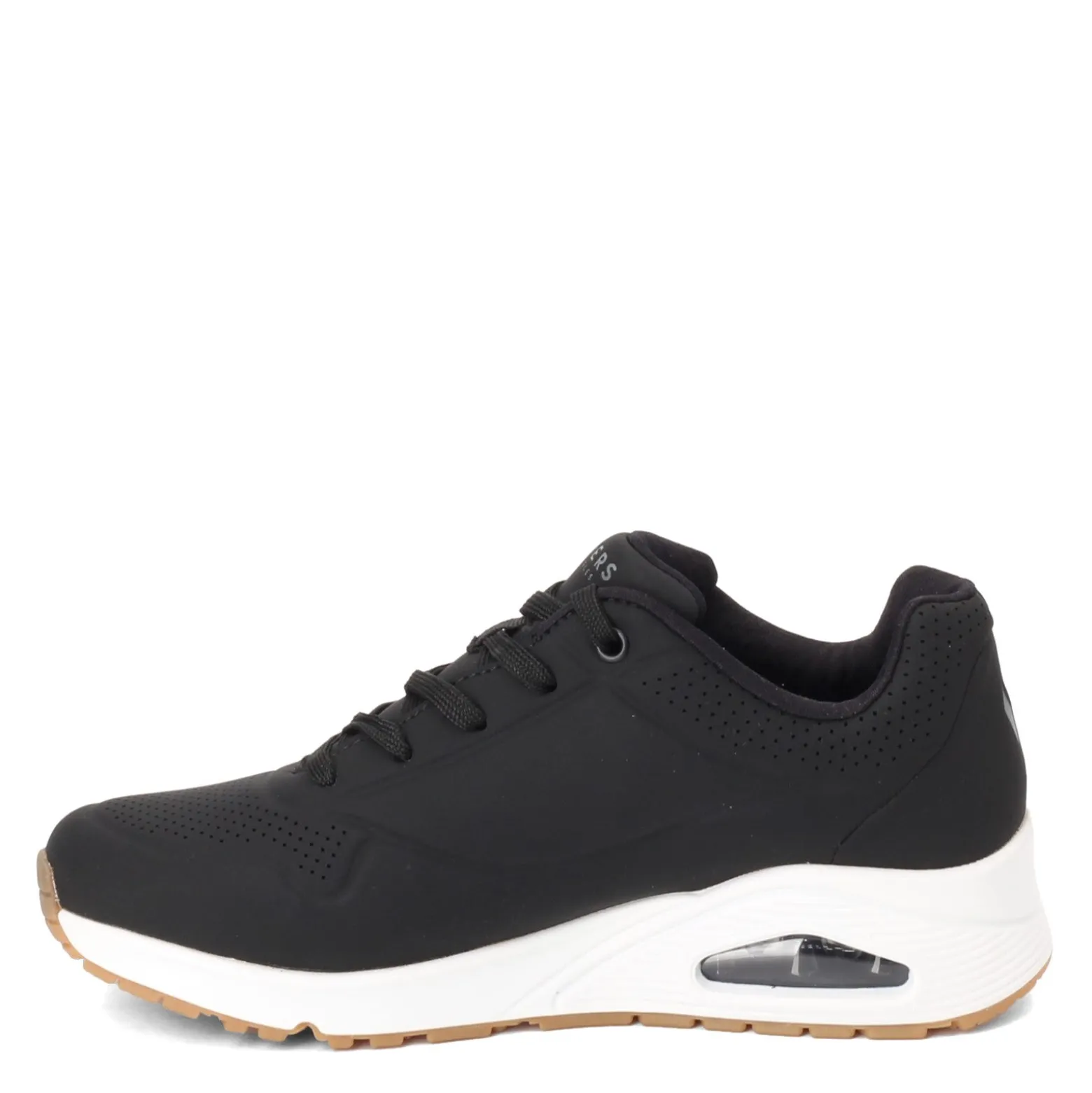 Women’s Skechers Street, Uno – Stand on Air Sneaker. You’ll love the cool and cushioned feel of this lightweight casual sneaker. The breathable perf uppers offer a cooling effect, while the visible air cushion in the heel and the memory foam footbed will support every step you take.