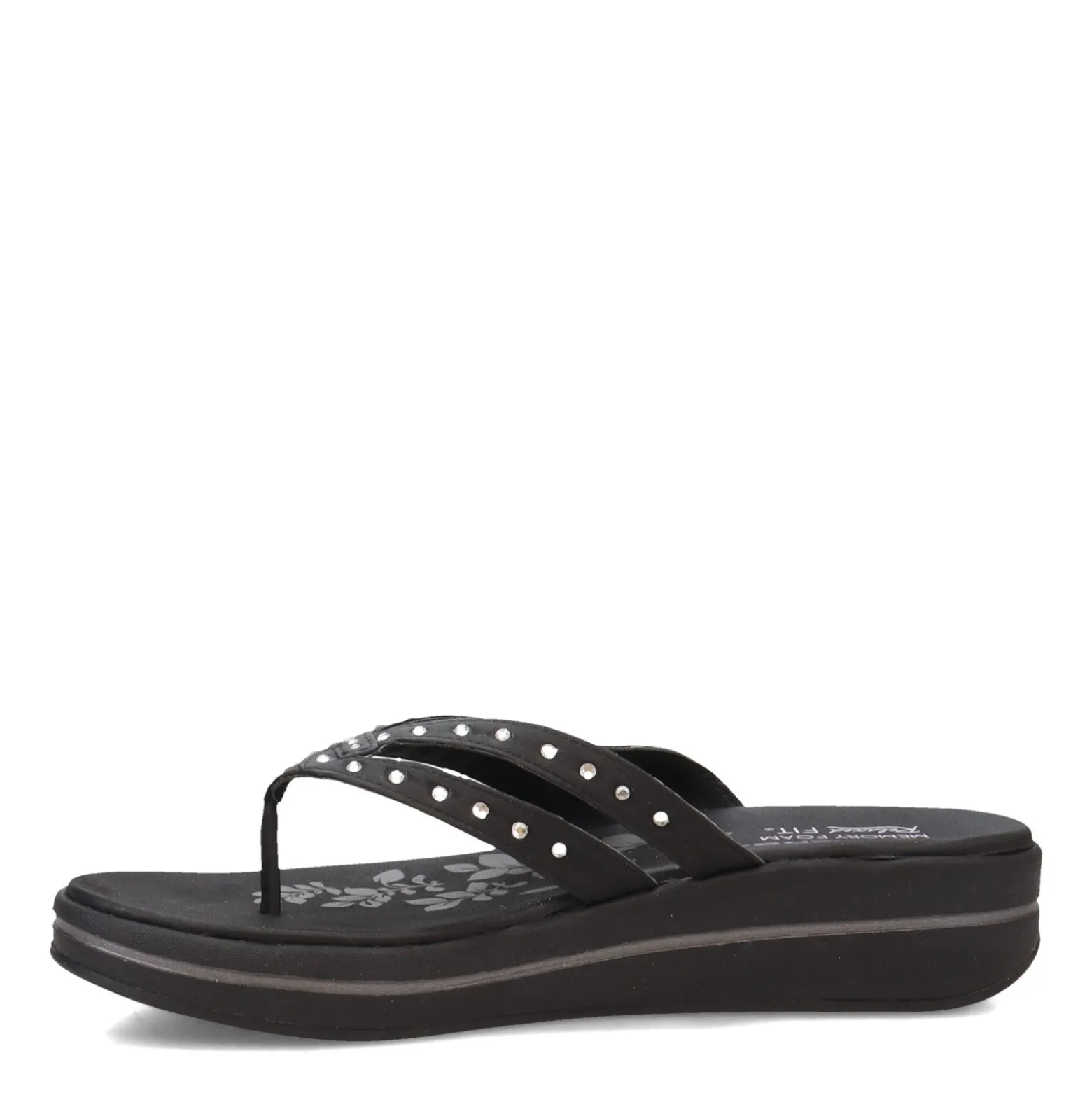 - Memory foam cushioned footbed for added comfort